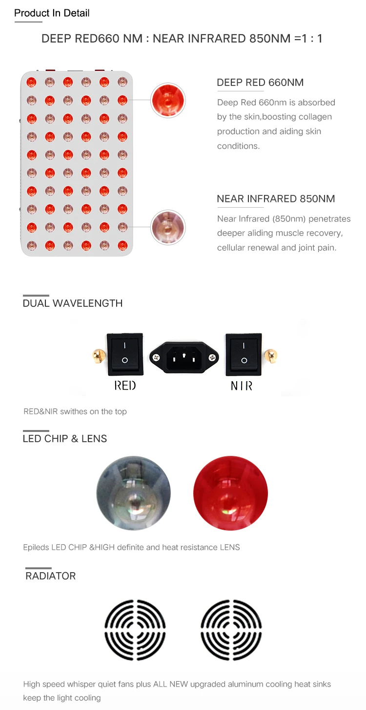 2. Low MOQ custom service and Available in multiple styles 3. Stock in both Shenzhen factory and CA, US warehouse, 1-3 days fast delivery for sample order 4. Strict quality control, every product should pass quality inspection from material to delivery. 5. Flexible custom wavelengths, our standard color is 660nm:850nm=1:1, we can also add 630nm 810nm 830nm.etc as required.