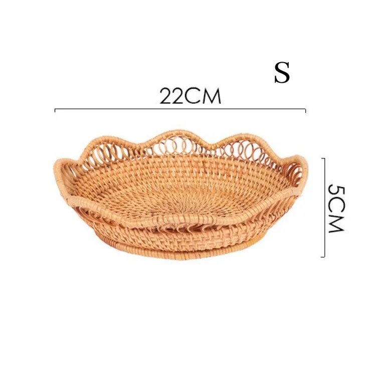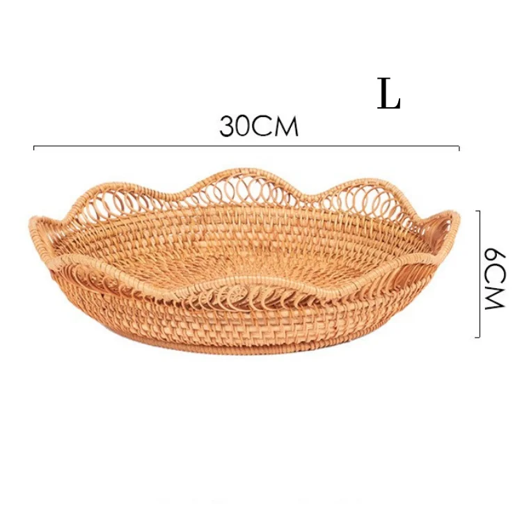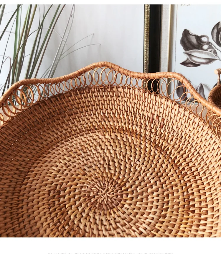 Rattan Handmade Fruit and Vegetable Woven bandeja picnic redonda Handcraft Wicker Food Storage Serving Tray