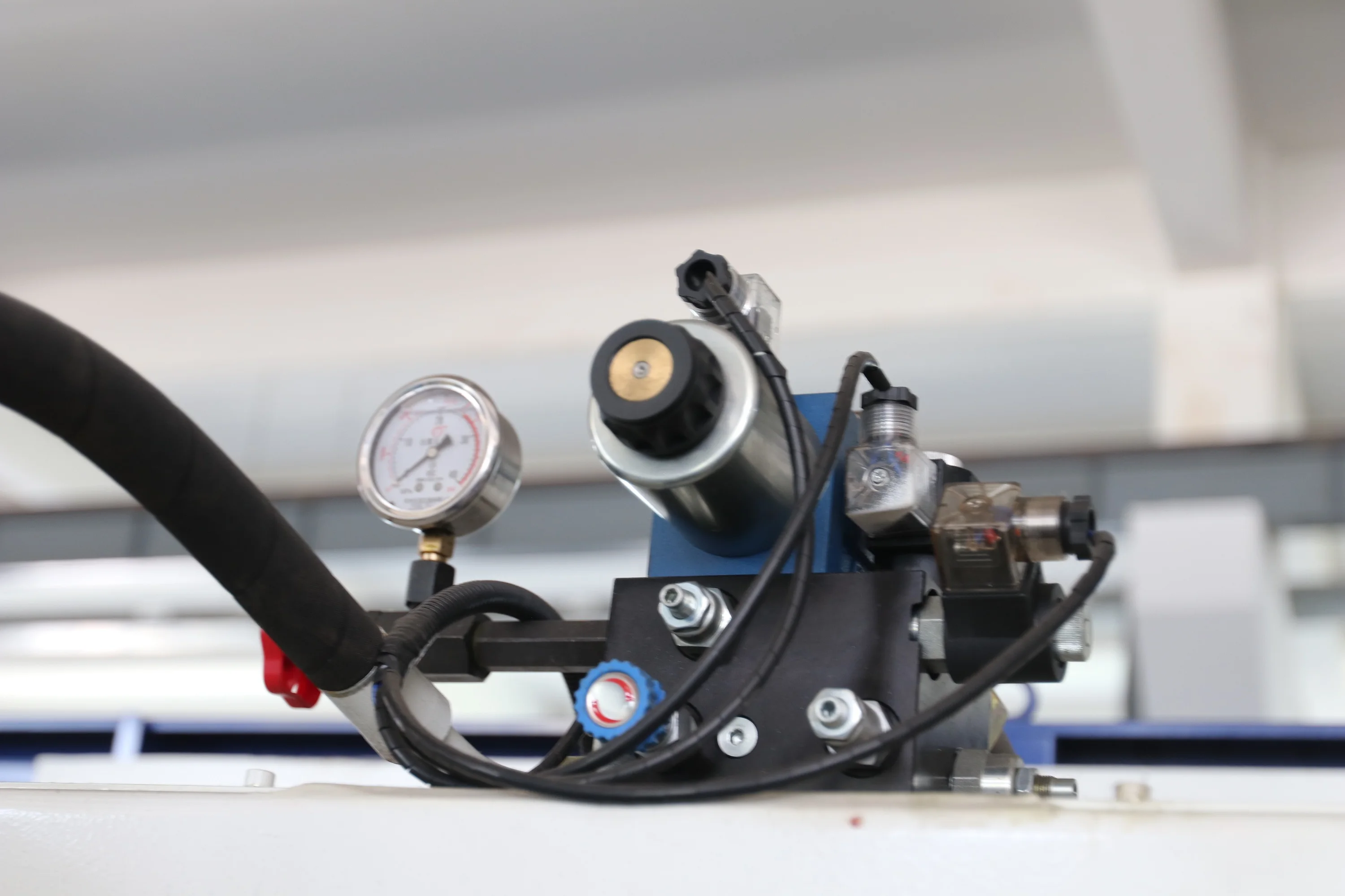 Solenoid Valve GroupThe Haas HSK series bending machine adopts the German Rexroth solenoid valve group. The advantage of the solenoid valve group is that the external leakage is blocked, the internal leakage is easy to control, the use is safe, the system is simple, the power is small, and it can be connected to the computer.