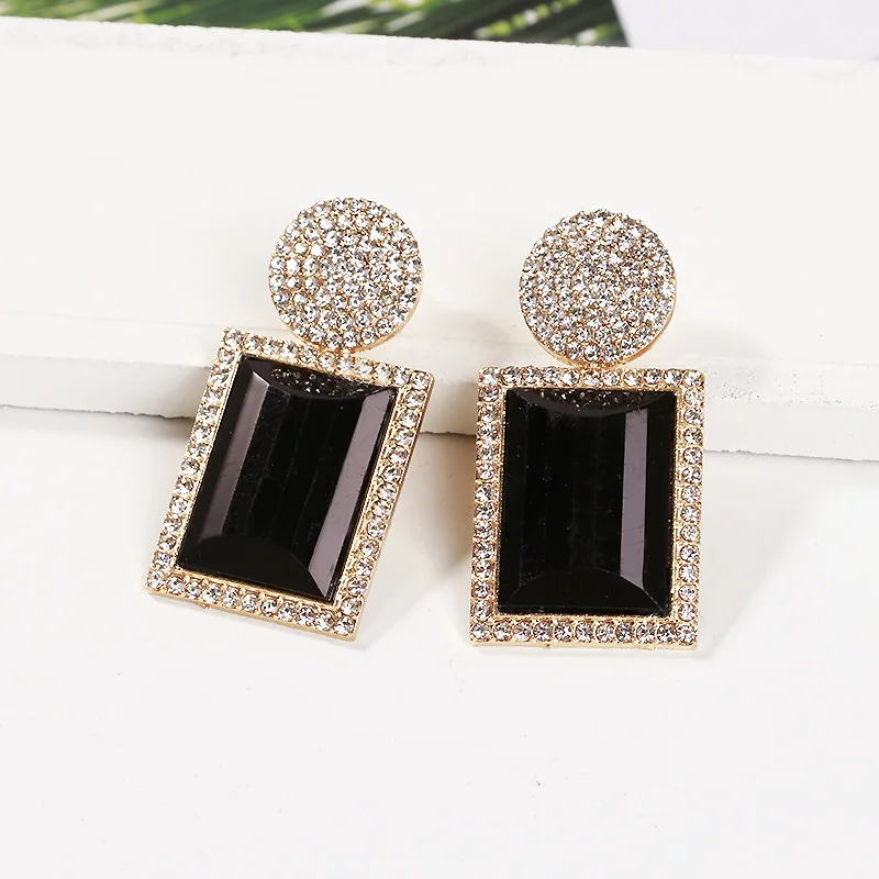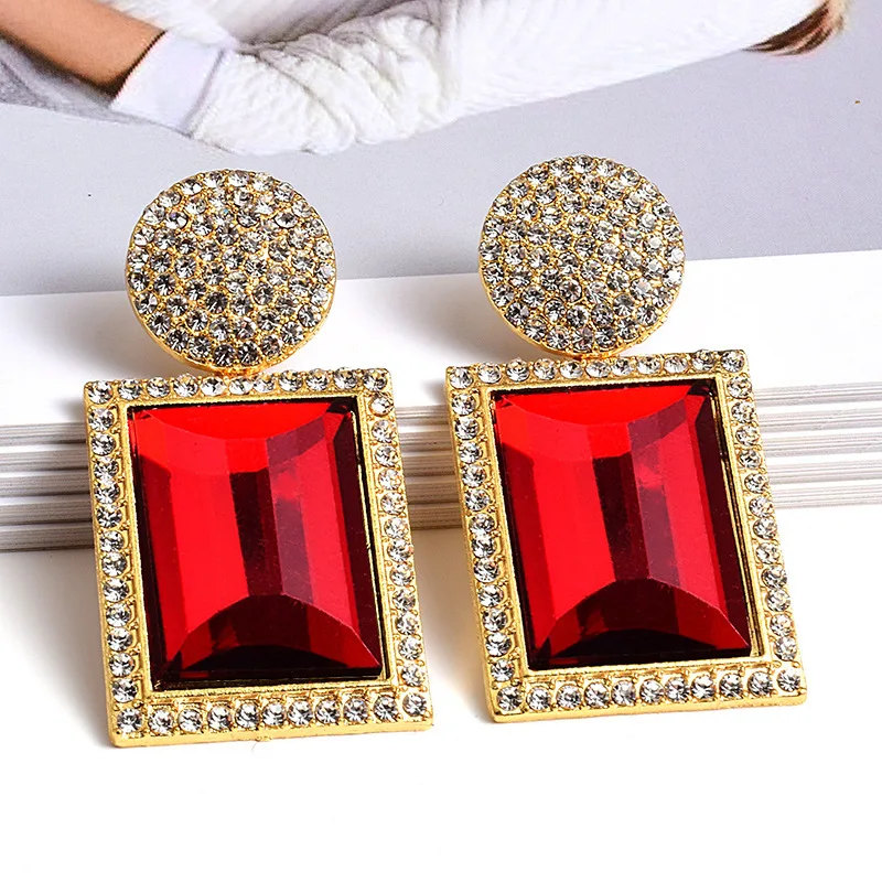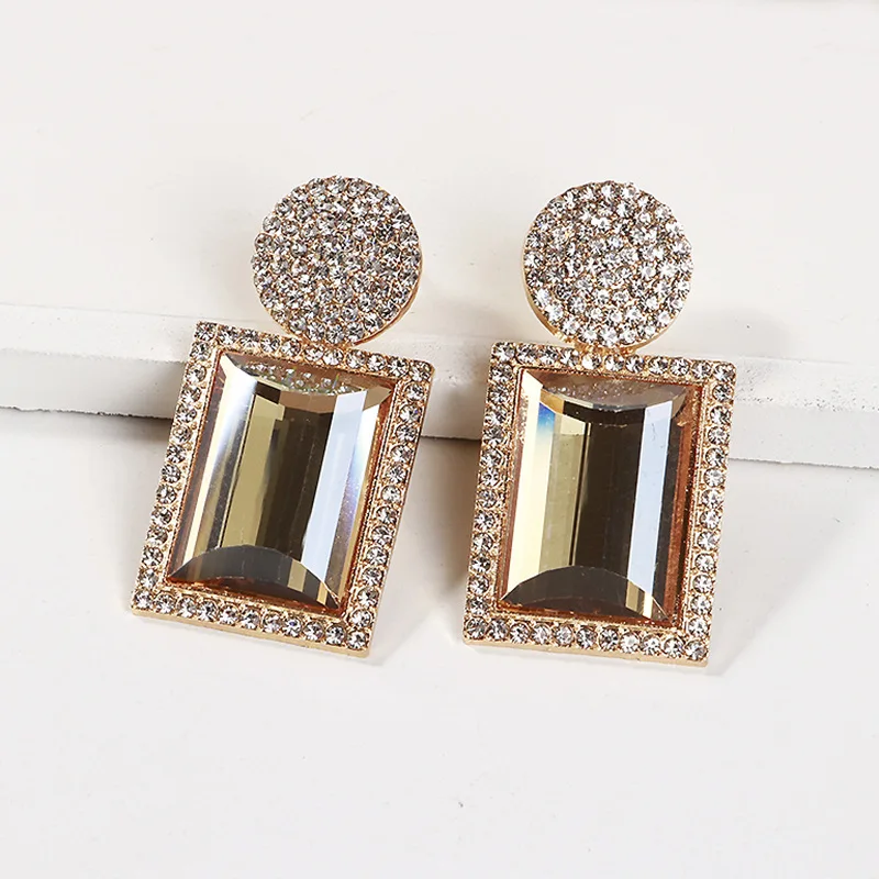 Wholesale Fashion Glass Dangle Earrings For Women Shiny Rhinestone Square Pendant Drop Ear Jewelry Girl Gifts