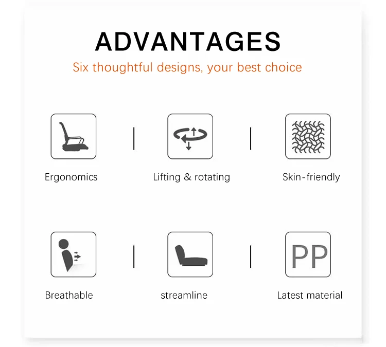 Description | 1. Can lift and rotate 2. Backrest: breathable mesh + plastic fixed lumbar support 3. Handrail material:High toughness plastic 4. Frame material:High toughness plastic 5. Base: Metal,the butterfly shape is inclined, stable and not shaking 6. Wheels: PP material 7.Packed size of 2 sheets:60W*58D*45H | |||||||