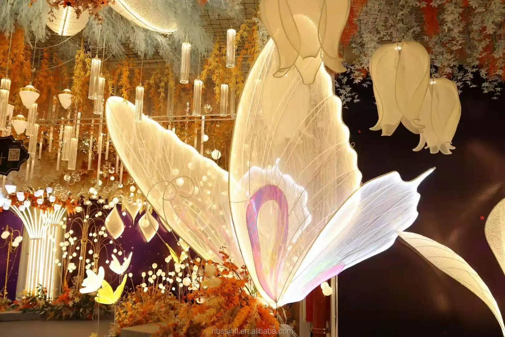 Wrapping LED strips or hanging flowers on this Iron flower background can take on different styles.