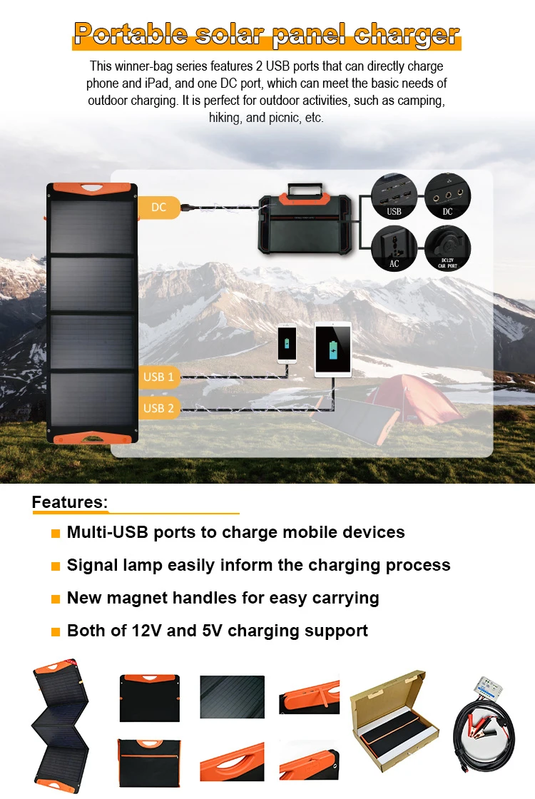 Model | Solar Cell | Module size(Fold) | Module size(Unfold) | Cell Effiency | Voc(V) | Vmp(V) | Isc(A) | ImplA) | N.W(kg) |