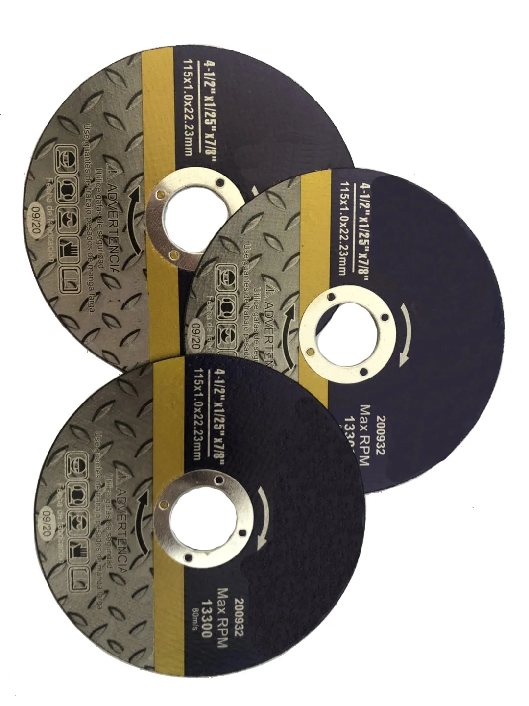 Size(mm/inch) | MM INCH 41A-400*3*25.4 16″*1/8″*1″41A-355*3*25.4 14″*1/8″*1″ 41A-305*3*25.4 12″*1/8″*1″ 41A-255*3*25.4 10″*1/8″*1″ 41A-230*3*22 9″*1/8″*7/8″ 41WA-230*2*22 9″*1/12″*7/8″ 41A-180*3*22 7″*1/8″*7/8″ 41A-180*2*22 7″*1/12″*7/8″ 41WA-180*1.6*22 7″*1/16″*7/8″ 41A-150*3*22 6″*1/8″*7/8″ 41A-150*2*22 6″*1/12″*7/8″ 41A-150*1.6*22 6″*1/16″*7/8″ 41A-125*3*22 5″*1/8″*7/8″ 41A-125*2*22 5″*1/12″*7/8″ 41A-125*1.6*22 5″*1/16″*7/8″ 41WA-125*1.2*22 5″*1/16″*7/8″ 41A-115*3*22 4.5″*1/8″*7/8″ 41A-115*2*22 4.5″*1/12″*7/8″ 41A-115*1.6*22 4.5″*1/16″*7/8″ 41WA-115*1.2*22 4.5″*1/21″*7/8″ 41A-100*3*16 4″*1/8″*5/8″ 41A-105*2*16 4″*1/12″*5/8″ 41A-105*1.6*16 4″*1/16″*5/8″ 41WA-105*1.2*16 4″*1/21″*5/8″ 41WA-105*1.2*16GREEN 4″*1/21″*5/8″ 41WA-75*1.6*9 3″*1/16″*5/14″ |