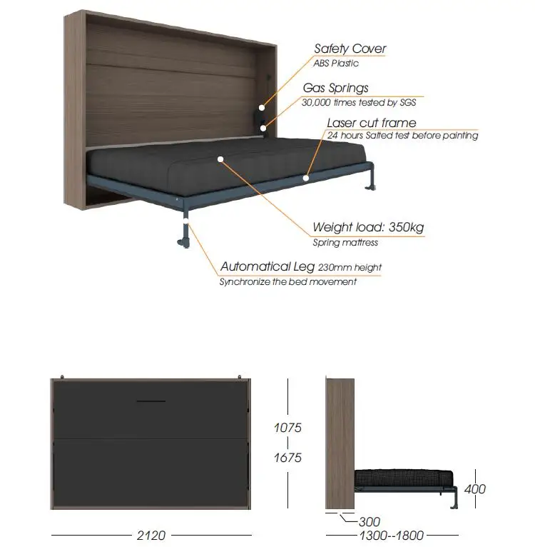 Product Name | Wall Bed Mechanism Kit | Style | Horizontal Single |