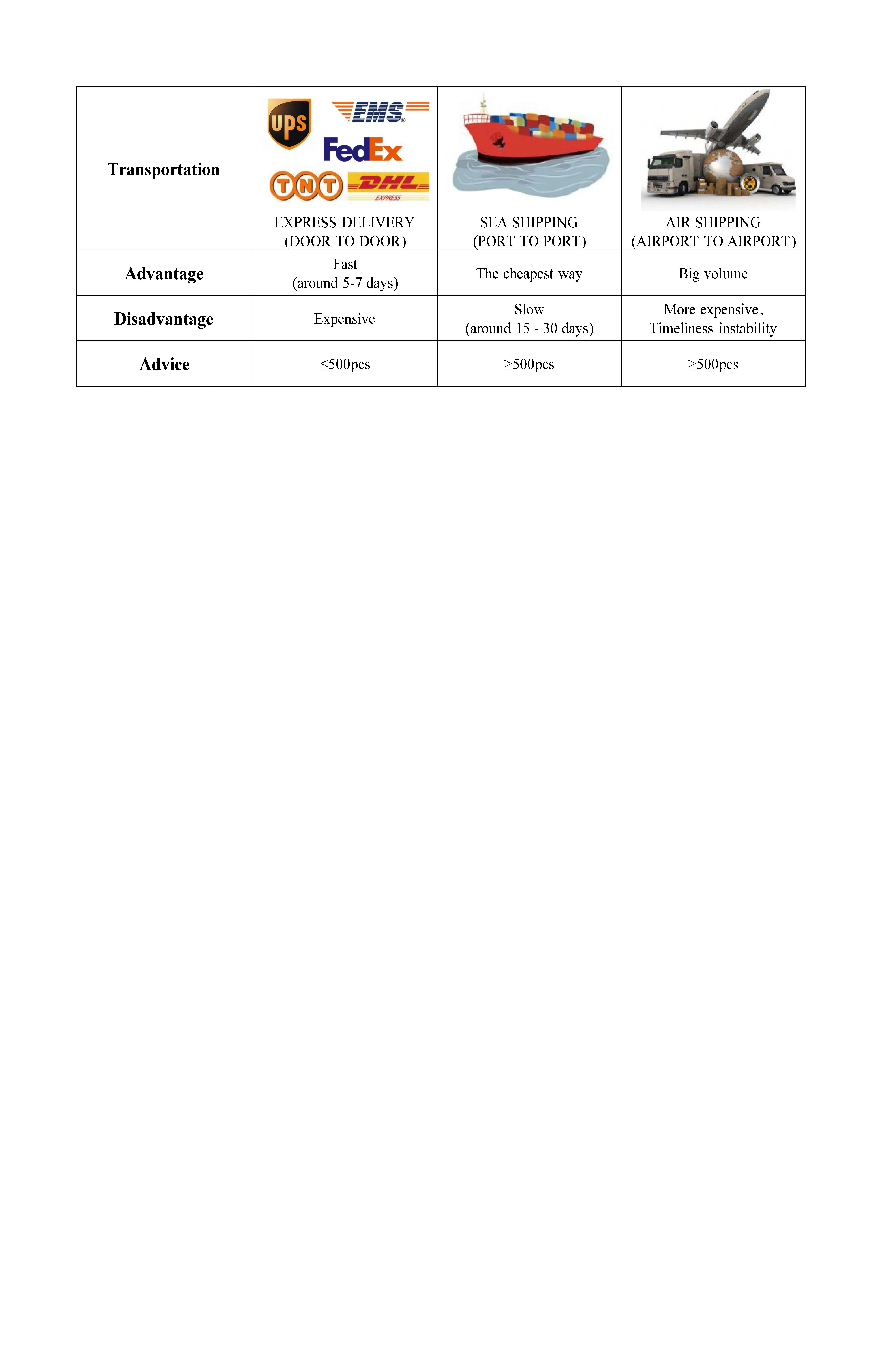 Trading terms | EXW, FOB, FCA, CIF, CFR, DDP | ||||||