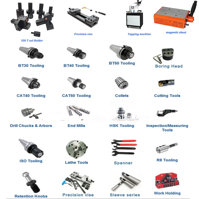 Accessories: Tool Holder Bushing, Nut and Spanner, Pull Stud, Tool Holder Locking Device,spanner, Tapping machine etc