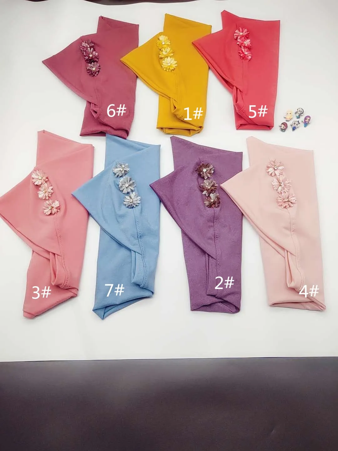 MXCHAN SJH2200 Children Handmade Three Flowers Turban Muslim kids hijab girls scarf for kids