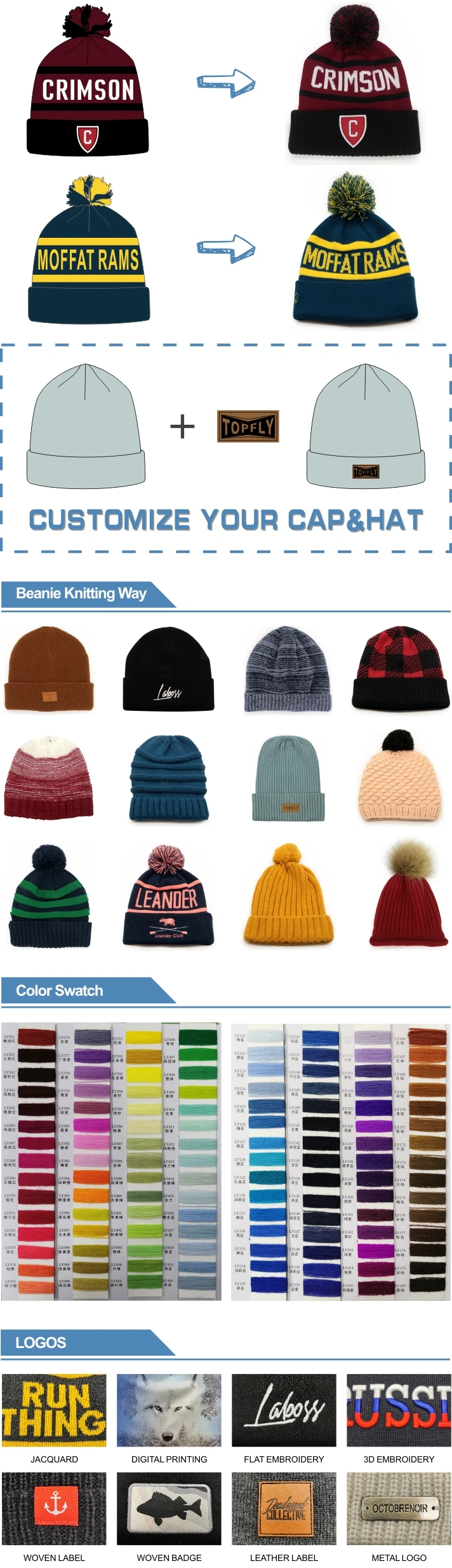 7.Logo | custom design | Printing, Heat transfer printing, Applique Embroidery, 3D embroidery leather patch, woven patch, metal patch, felt applique etc. | |