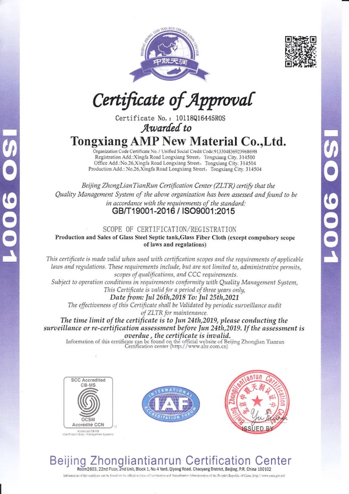 The company located flatland of North Zhejiang Province,120km east far with Shanghai international airprot and sea prot,it enjoys extremely convenient traffic.We are specialized in production and sales of glass fiver and its fabric,FRP products and relevant chemicals.The products have already passed ISO9001 QUALITY attesatation.Over twenty years of rich experience in composited field,90% of products have exported to Europe,American and Middle East,South Asia,established long term and stable relation with many customers.
