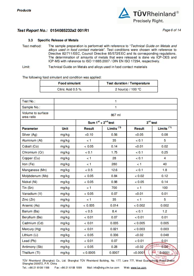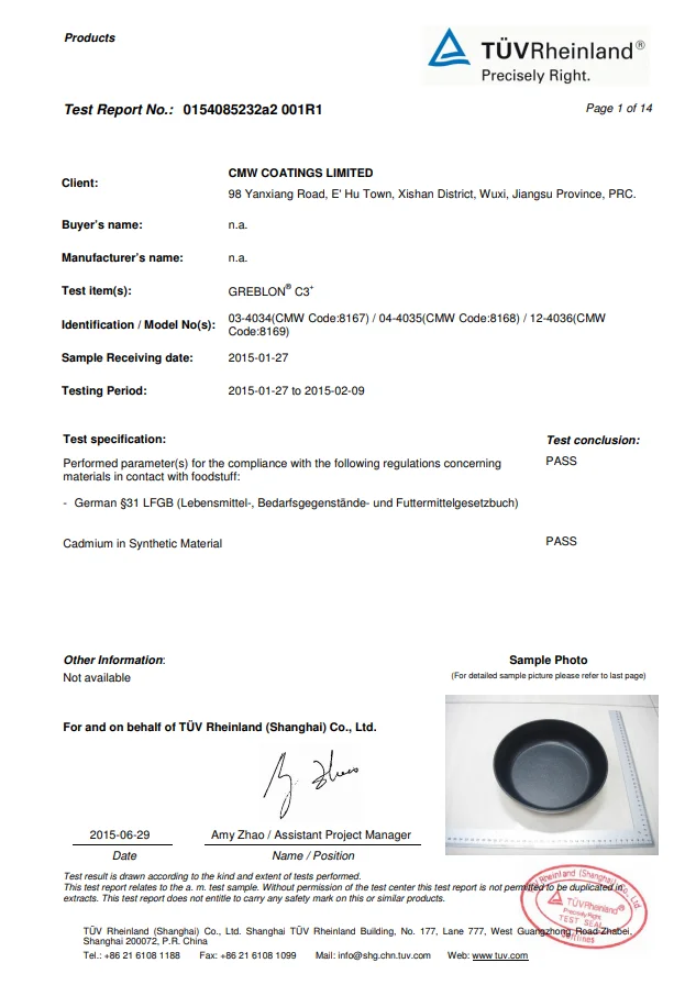 Inner coating | Marble or Granite | Exterior coating | Silicone or Ceramic |