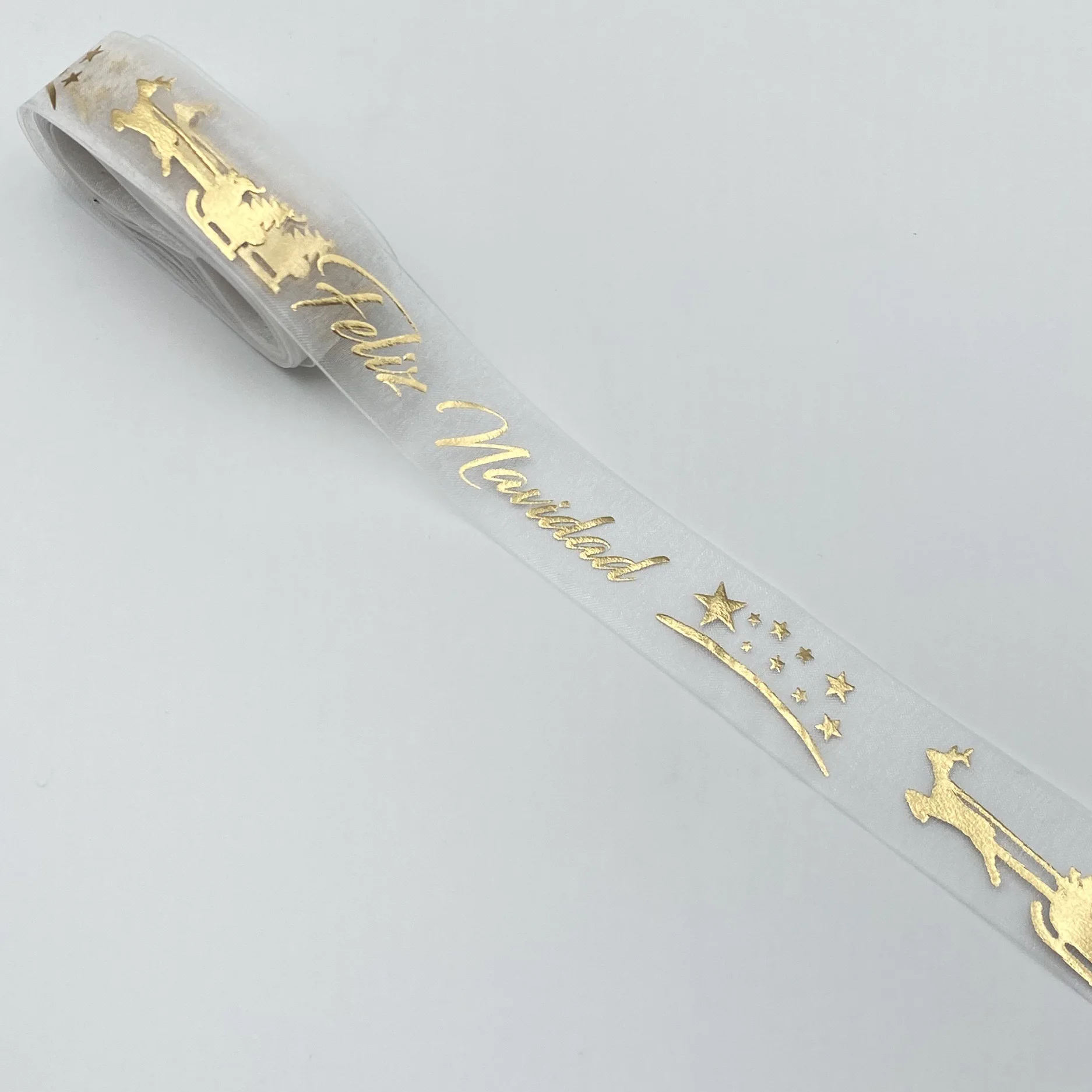 A:Yes, we can customize the ribbon with your logo. MOQ is 2000 yards per design.