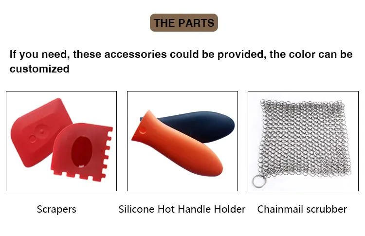 This frying pan set is perfect for grilling meat and charcoal-fired vegetables. It is made of cast iron made in China and distributes and retains heat evenly, providing you with the ultimate cooking surface. It is the best choice for wholesale cast