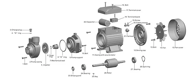 Pump body | Cast iron,with brass/AISI304 SS insert if request,reduces the risk of impeller seizure |