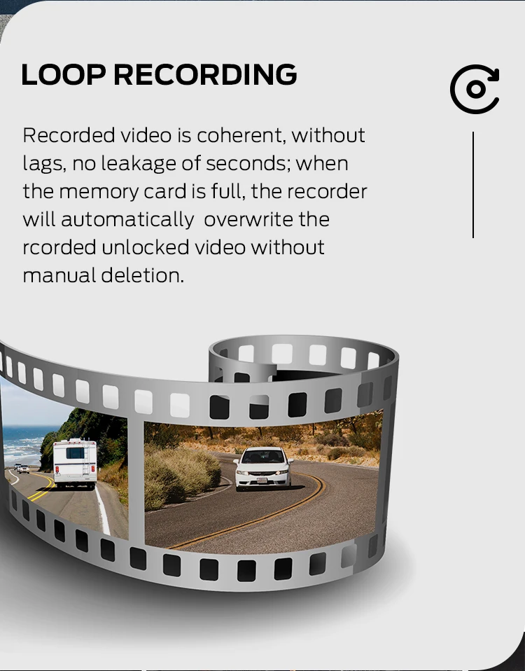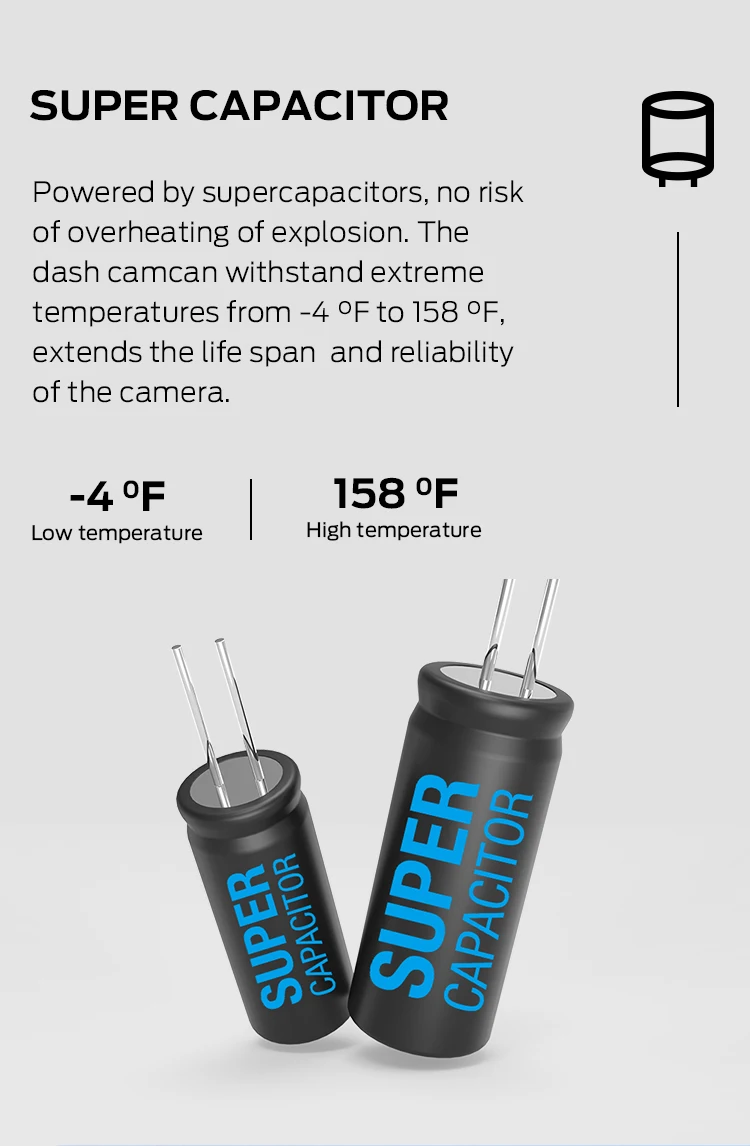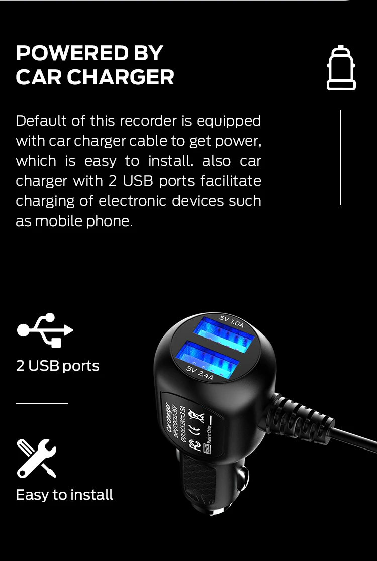•Support 24h parking monitor and Time-lapse recording (this function can work only when power by hard wire cable, which need to buy separately. Package will contain Car Charger Cable only, kindly leave message to us if you need hard wire cable.) Hard Wire Cable rely on car batteries to keep working after people leave the car. We have set up voltage protection to prevent the product from consuming up the car battery. Therefore, at any time, It can ensure that the driver can restart the engine the next time. |