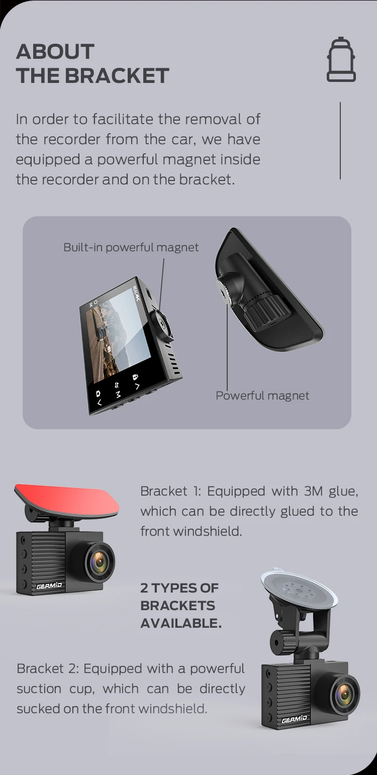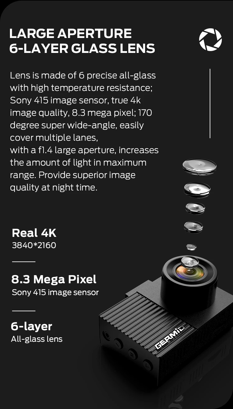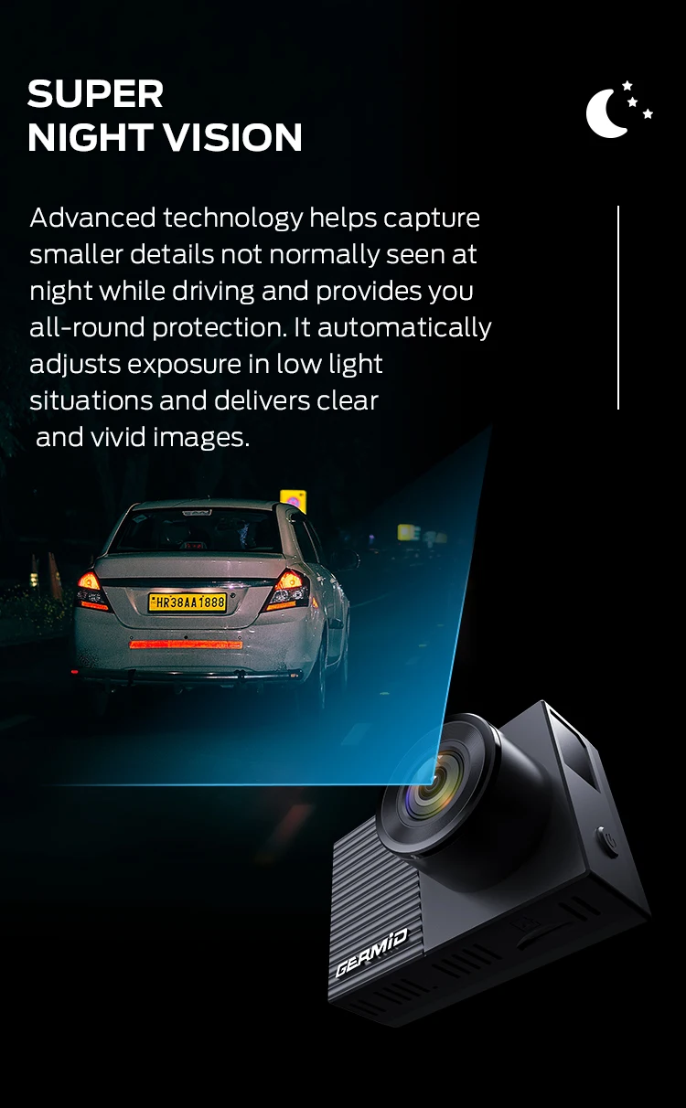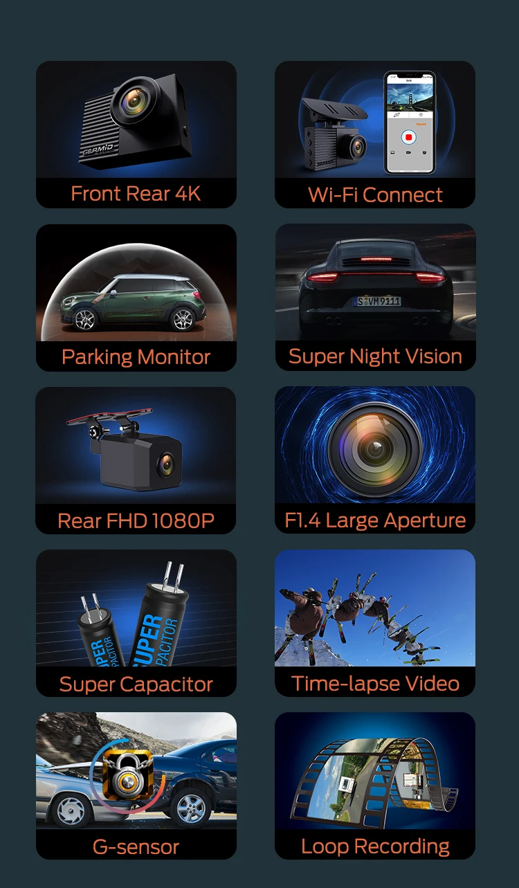 •GERMID 4K high definition dual lens car Dash camera for both front and rear camera recording |