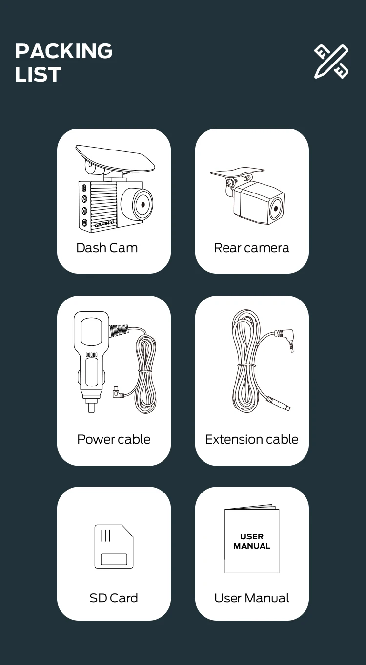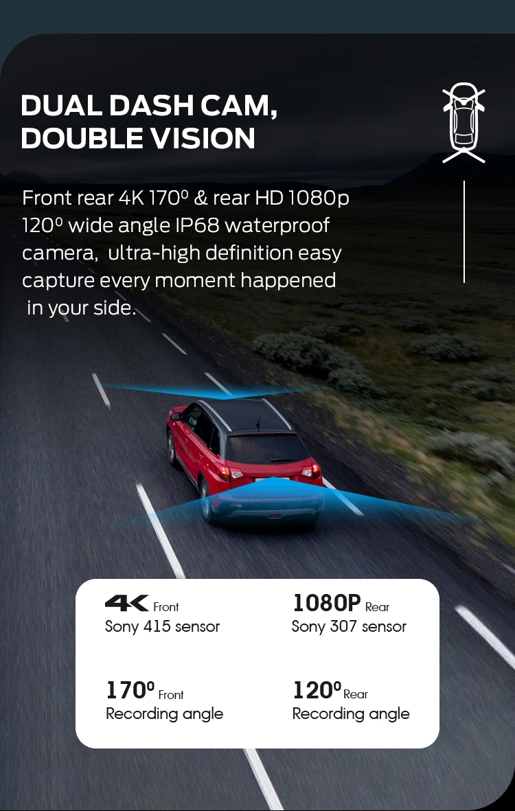 GERMID 4K Dual Lens Recording 170 Degree Car Dash camera For Both Front and Rear Vrew With high Quality Control |