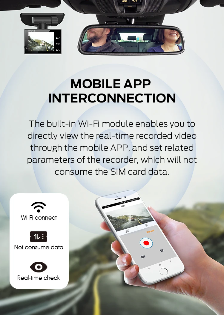 •Support WiFi APP. The Smart phone can View/ save the recorded video through WiFi connection |