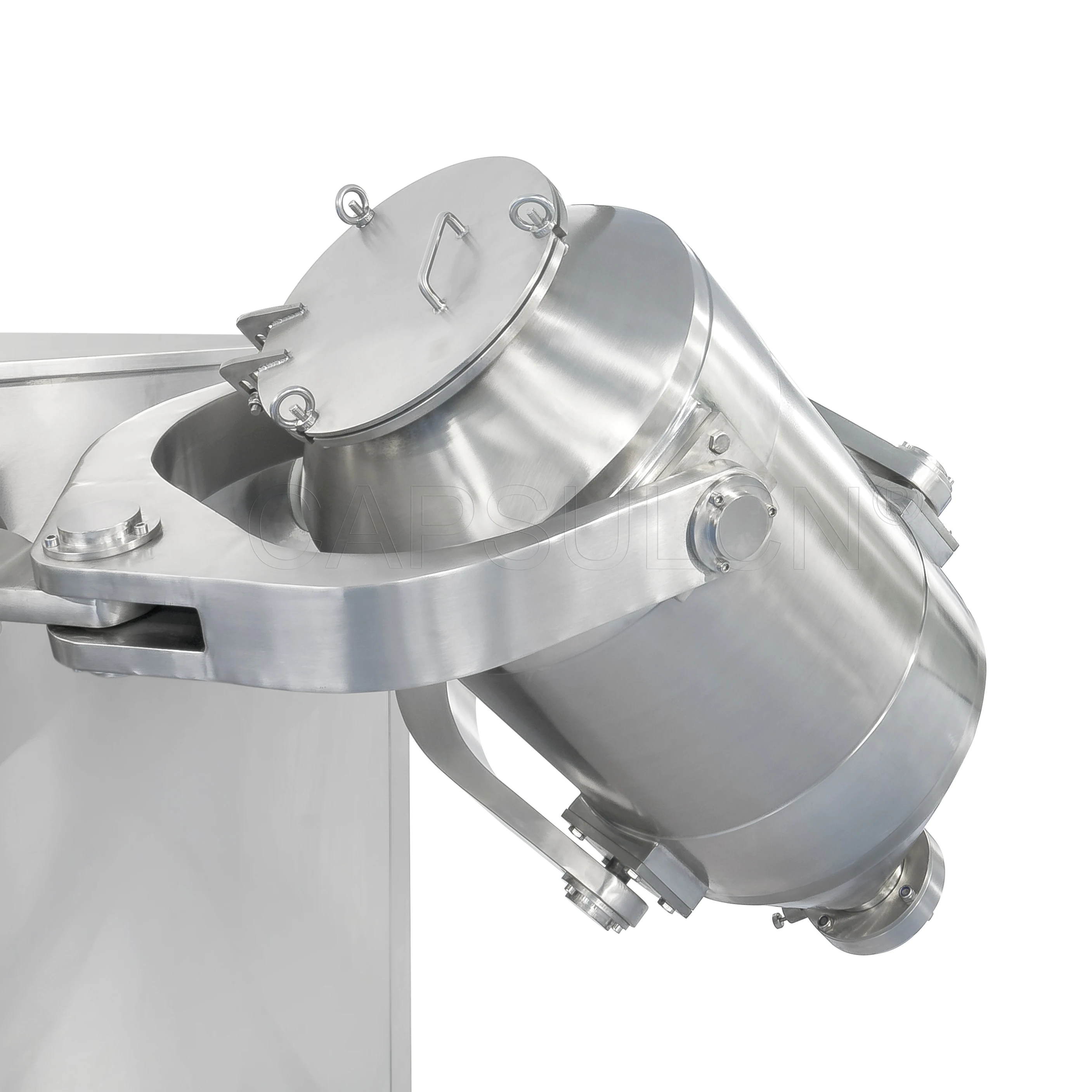 The max charging volume of the SH series three dimensional motion mixer is one time higher than that of general mixer (max charging volume of a general mixer is 40% of full barrel volume). 2. It has a unique mixing vat design, the inner walls of which are fine polished. There is no dead angle, no contamination and the materials are discharged automatically under gravity function without any residue. 3. The materials are mixed in a completely sealed vat.