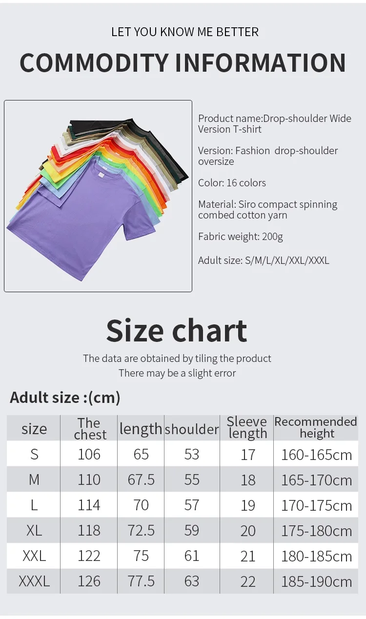 *Design: Drop-shoulder, plain colors, custom designs/logo support, OEM support.