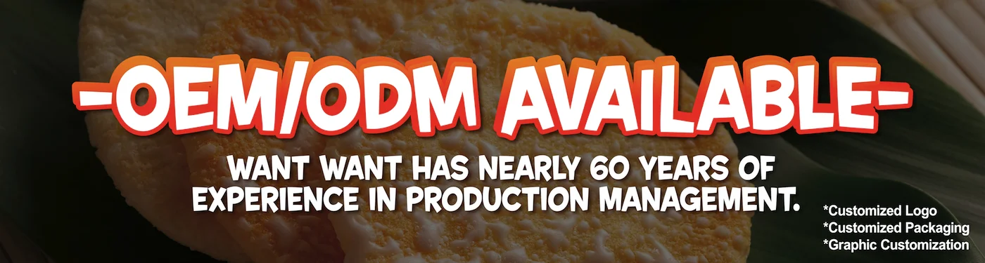 Want Want has nearly 60 years of experience in production management, the strictest quality control systems, and professional R&D teams. Currently, the Group has over 34 production bases with automated production lines. Want Want can manufacture a wide, bountiful category of products to meet the needs of clients, including: Rice crackers, beans and peas, candies, crackers, confectionery, fried and puffed snacks, seafood-flavored snacks, jellies, alcohols, instant drinks, rice noodles, cold chain and various packaged drinks. Various business models include OEM, ODM, and various other multi-faceted modes of cooperation. We look forward to working together with you!