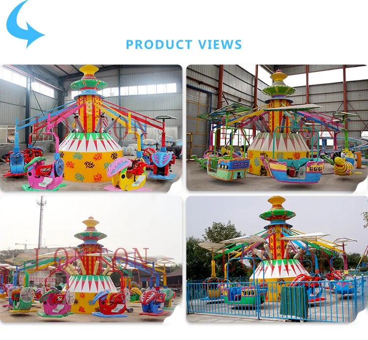 Magic Car is a kind of children self-control plane ride, one of the newest family rides for adults and children's entertainment. It has 8 PCs individual cabins all designed in the shape of cute cartoon shuttle. Each cabin has front panel inside, with buttons for passangers to control the plane, in the meantime, each propeller can rotate like a real aircraft. Its colorful space-themed paint, decoration of sparkling LED lamps and pleasant music attract people too easily. With an important hourly capacity and a small area needed, this shuttle ride is perfect for any theme park and funfair.