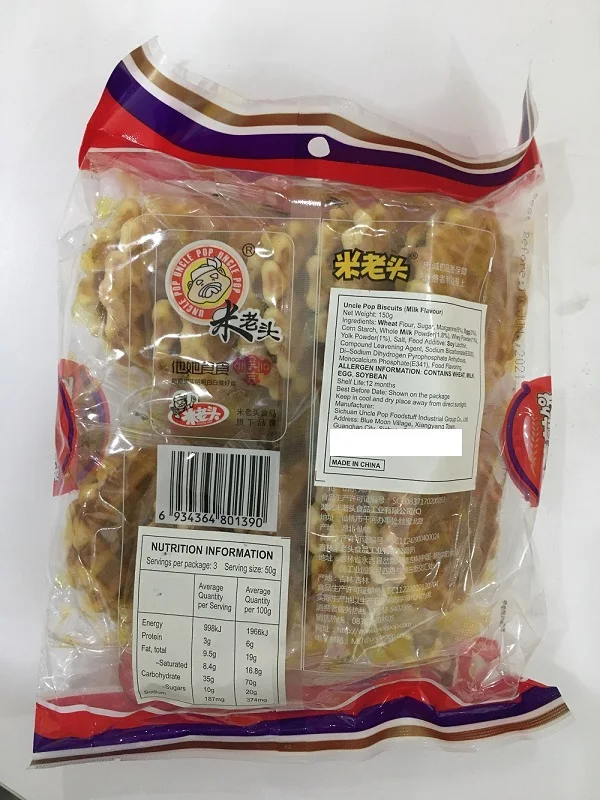 Product Name: | Uncle Pop Healthy Chinese Hot Selling Waffle Biscuit Crispy Milk Flavor Waffles Biscuit Grain Foos Snacks 150gX20bags |