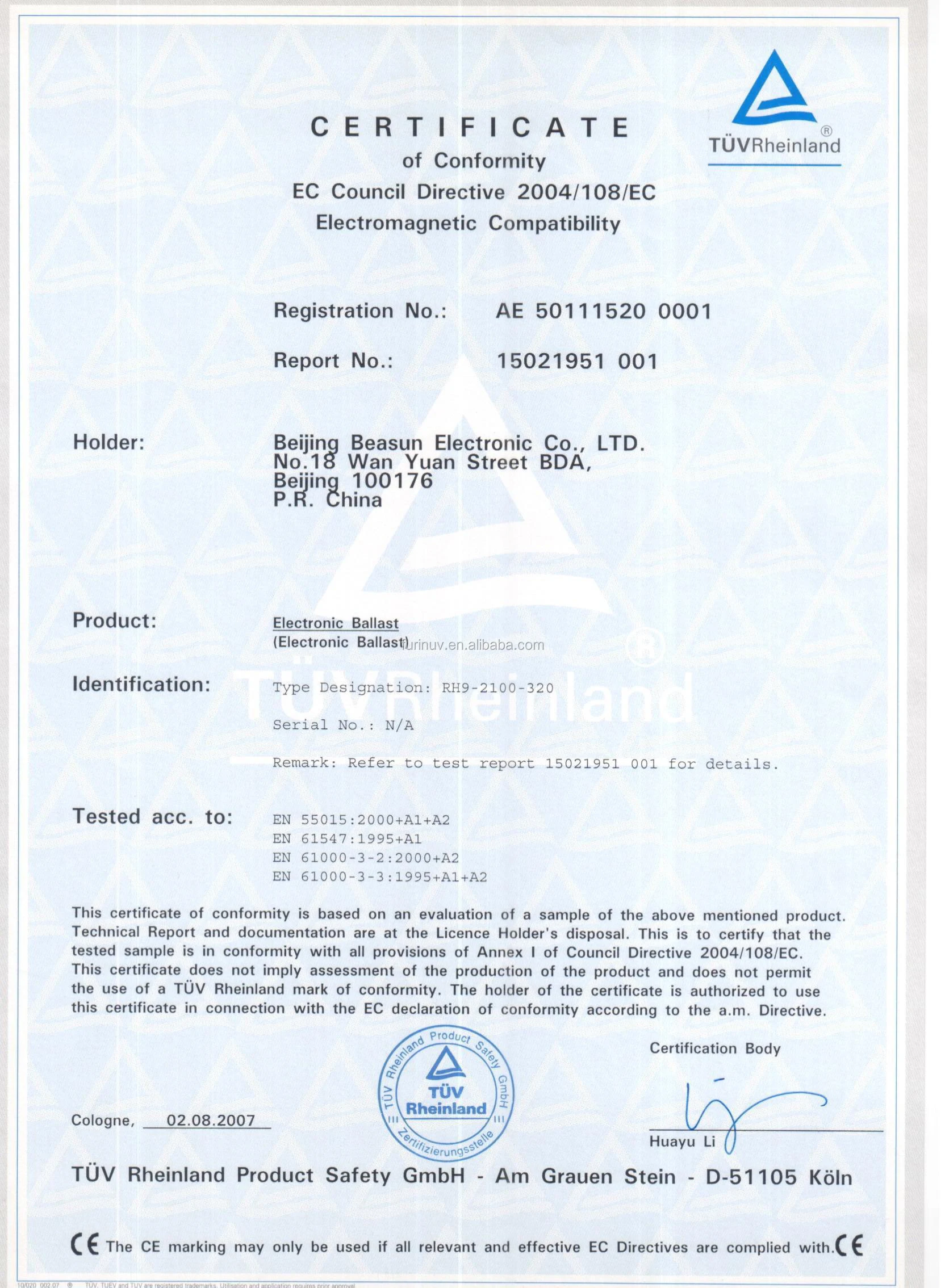 A: Yes, we have CE and UL certificates for some ballast types.