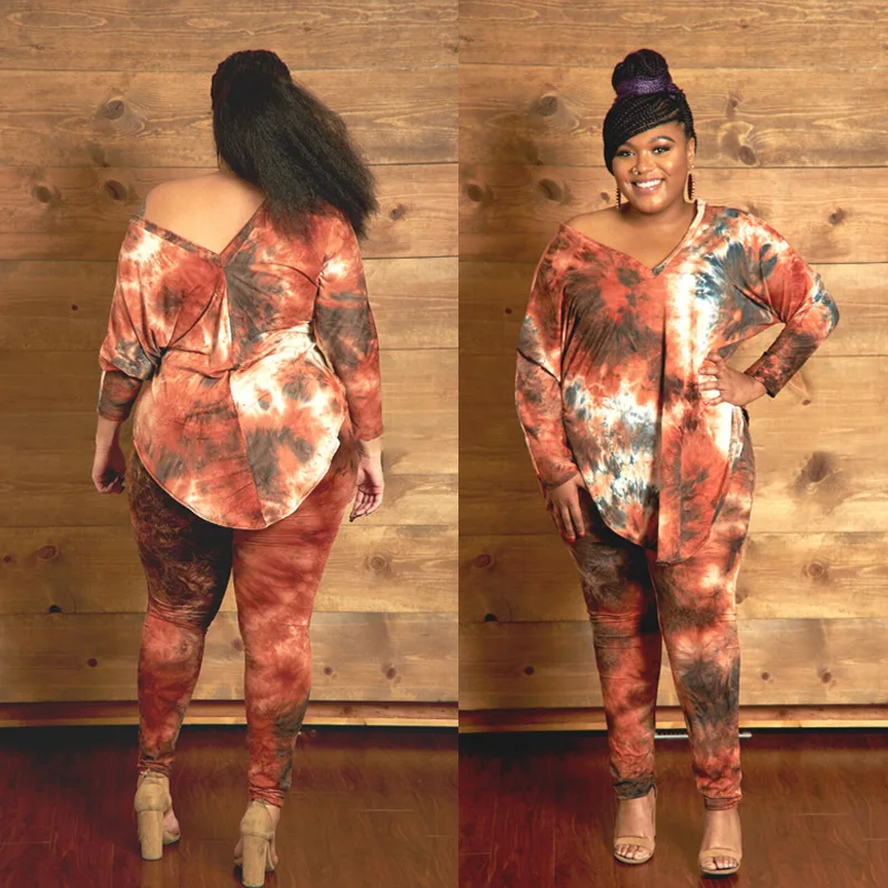 2021 New Arrivals Fashion Bodycon Tie Dye Legger Lady Clothing Plus Size 2 Piece Set Women