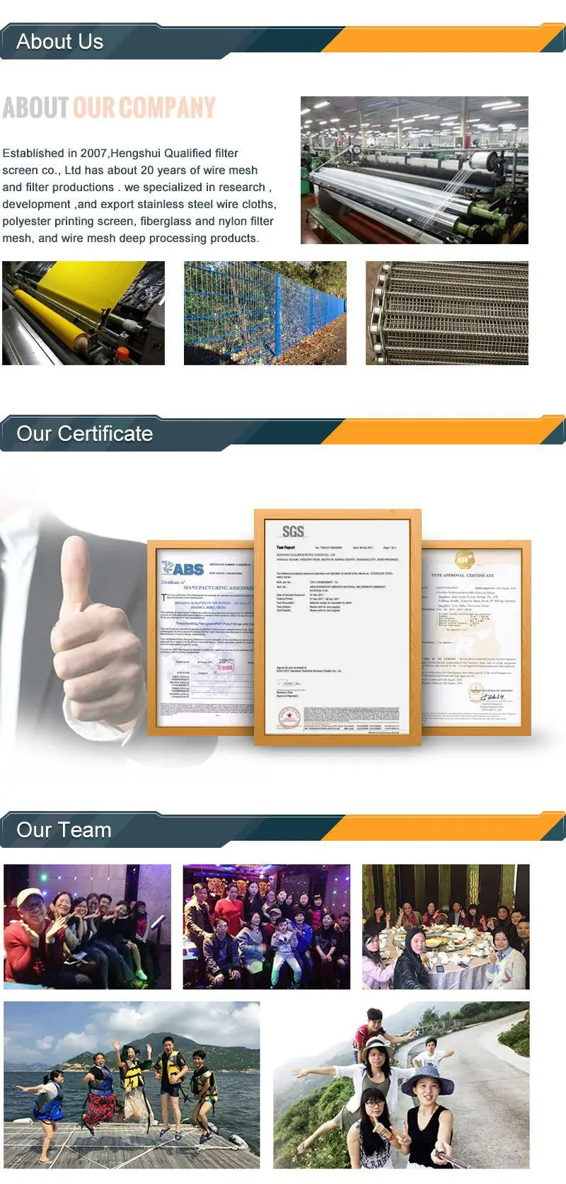 We are based in Hebei, China, start from 2017,sell to Domestic Market(10.00%),North America(10.00%),South America(9.00%),Mid East(9.00%),Western Europe(9.00%),Southeast Asia(9.00%),Eastern Europe(9.00%),Eastern Asia(5.00%),South Asia(5.00%),Southern Europe(5.00%),Northern Europe(5.00%),Central America(5.00%),Africa(5.00%). There are total about 11-50 people in our office.
