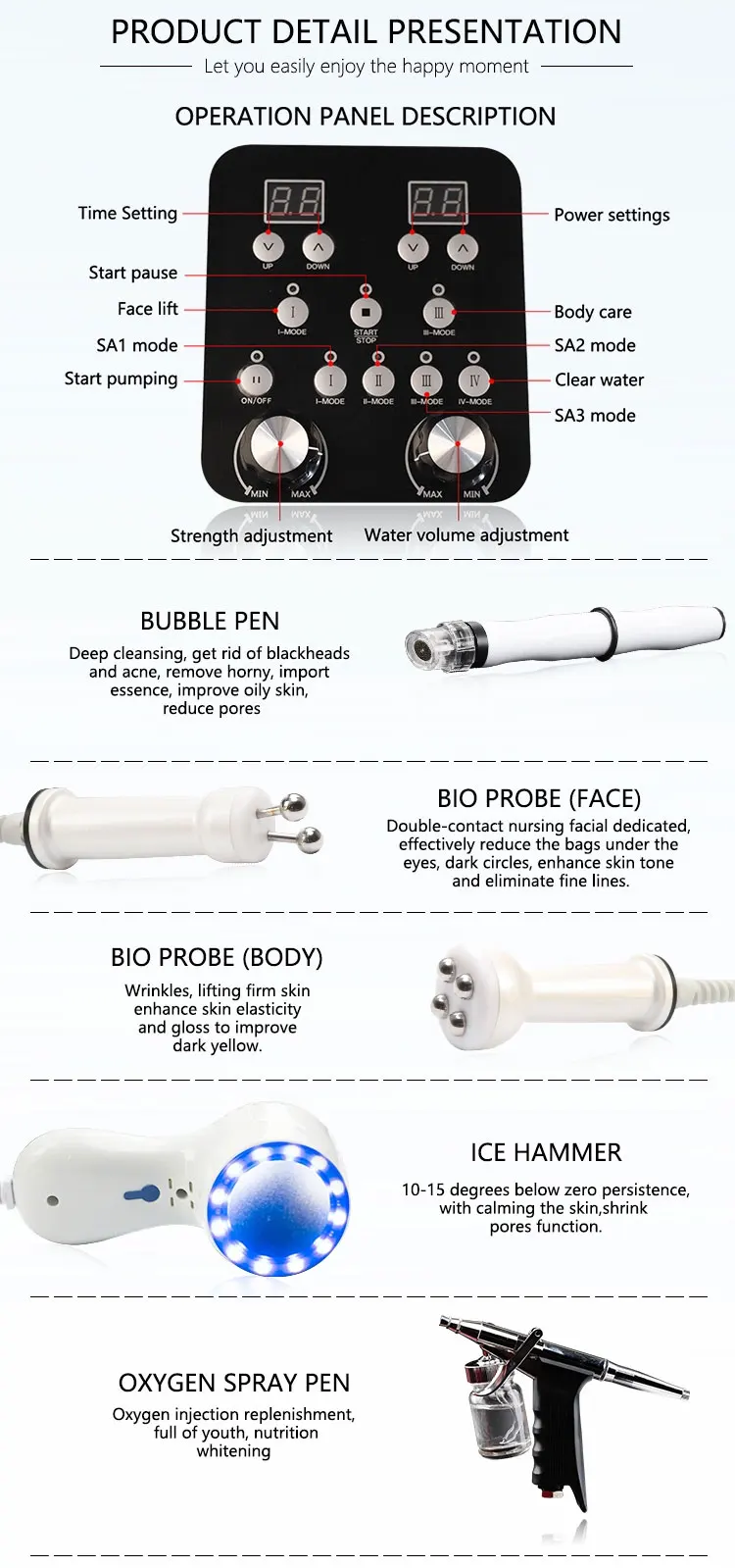 Through a specially designed small spiral suction head, it directly acts on the skin, and can keep small bubbles in the skin for a