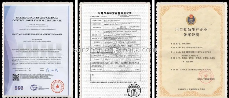 Xiangyang Sanzhen Ecological Agriculture Co., Ltd. was established in April, 2014. It is a production-oriented export enterprise. It is mainly engaged in crop planting and sales; acquisition, processing and sales of agricultural and sideline products such as sesame seeds and perilla seeds; production, processing and sales of starch and starch products; production, processing and sales of sesame oil and perilla oil; production, processing and sales of fried sesame seeds, fried perilla seeds and nut products sales. Its products are mainly sold in the international market, and the main export targets are the United States, South Korea, Japan, Vietnam, Singapore, Thailand and other countries.