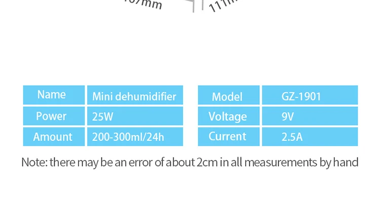 Maximum dehumidification | 500ml/24 hours |