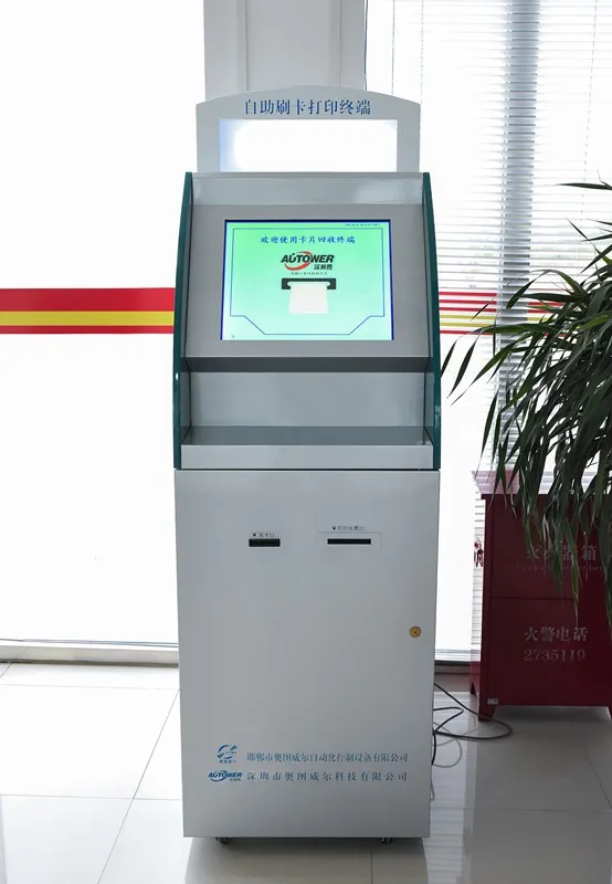 The self-service terminal is equipped with a high-performance integrated industrial control computer. The industrial control computer has a large-screen touch screen, and human-computer interaction is achieved through a touch screen. Self-service terminals are also equipped with hardware devices such as bill printers and IC card readers, and self-service terminals. Client operating software is also installed on the system to achieve the following functions:
