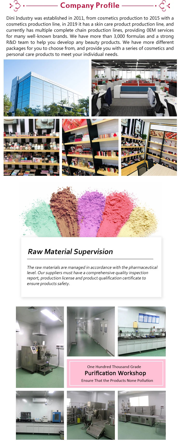 4. why should you buy from us not from other suppliers? Henan Dini Industrial Co., Ltd. stands for women's beauty. starts with cosmetics packaging material. After 9 years of development, we now have packaging material as production line, cosmetics production line and skin care production line.