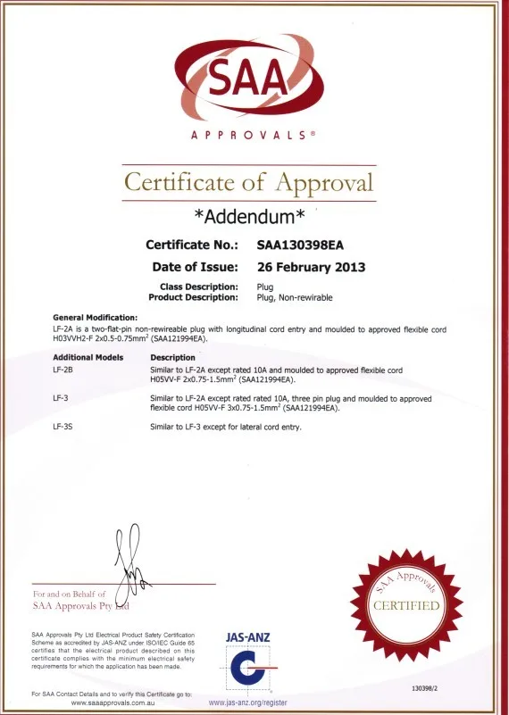Our products has been approved in many countries ,so that we own many authorized certificates in safety regulation such as :CCC ,UL ,CUL,VDE , SAA, PSE ,BS ,KC ,IRAM ,CE etc .Our products are popular in USA ,EU ,JAPAN, KOREA ,BRASIL, ARGENTINA etc , Meanwhile ,our all products up to REACH&ROHS environmental standards ,We are working with many large and famous companies in above countries .