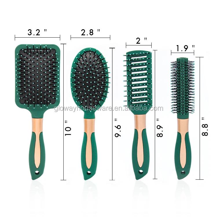 Gloway Custom Oem Professional 4Pcs Luxury Curly Plastic Detangling Hairbrushes Salon Green Curly Hair Brush Set For Women