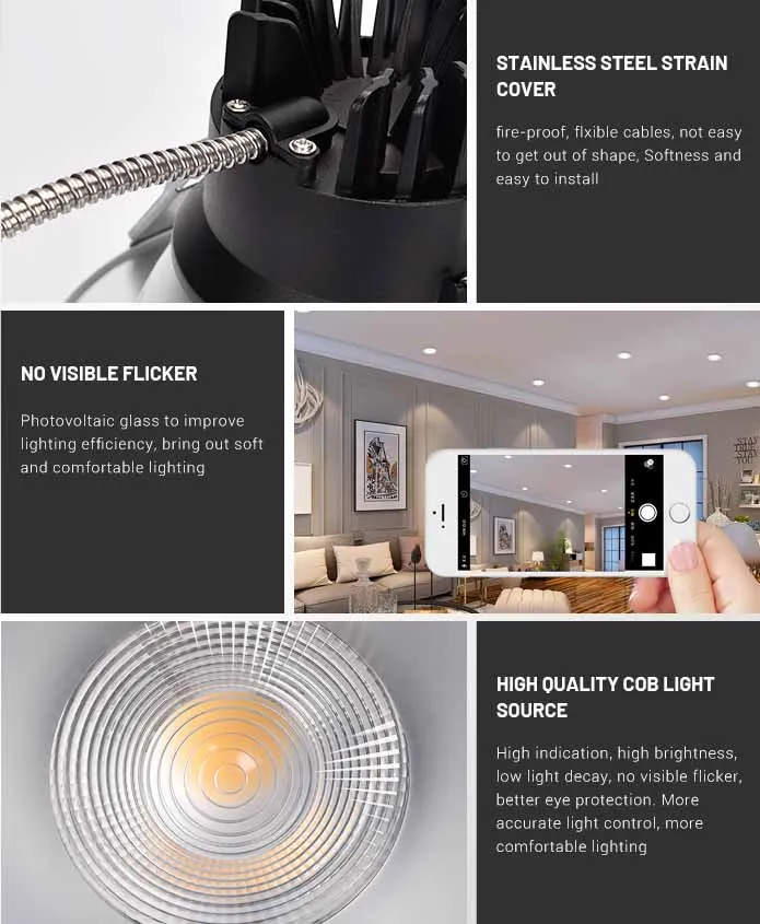 Flexible adjust beam angles, High efficiency heat dissipation. Accurate and efficient light control, Triple anti-glare