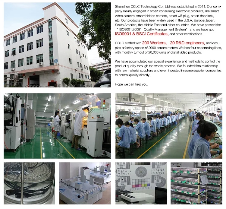 Our advantage | (1) With CE/RoHS,FCC,MSDS Report (2) Advanced Chipset & Cloud Server Guarantee Stable WiFi Connection (3) 10 Hours Working Time (4) User Friendly App, Easily Setup (5) Native English User Manual (6) Built-in Original Battery with Protector (7) Normal Working Temperature (8) Genuine Wide Lens of 150° (9) Micro SD Card Easily Taken Out (10) Strong Magnet Built-in | |