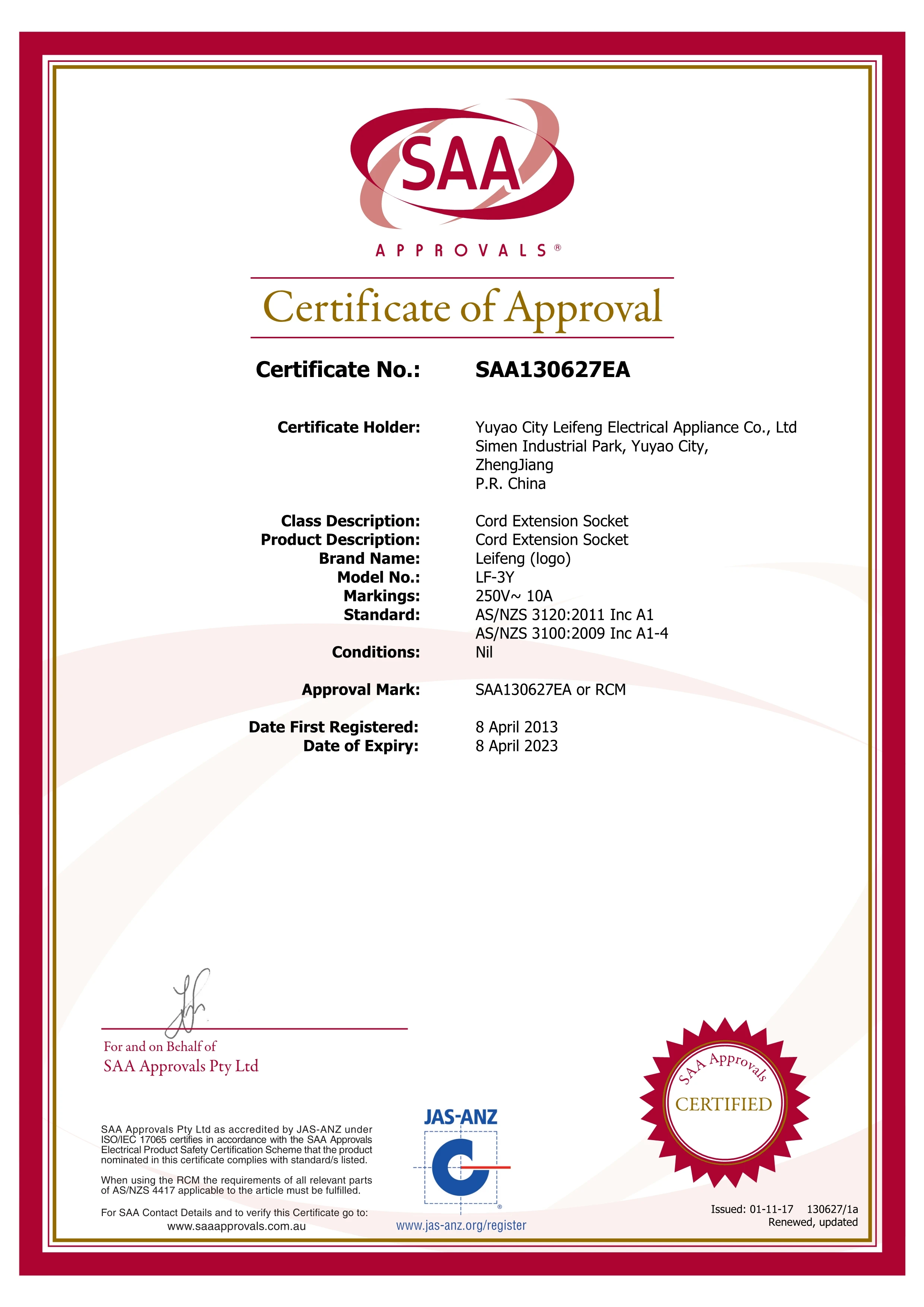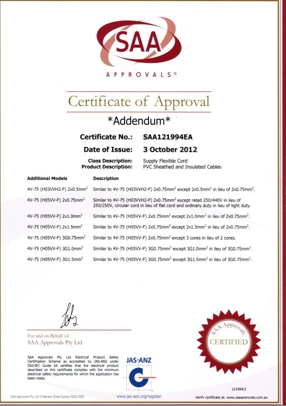 Our products has been approved in many countries ,so that we own many authorized certificates in safety regulation such as :CCC ,UL ,CUL,VDE , SAA, PSE ,BS ,KC ,IRAM ,CE etc .Our products are popular in USA ,EU ,JAPAN, KOREA ,BRASIL, ARGENTINA etc , Meanwhile ,our all products up to REACH&ROHS environmental standards ,We are working with many large and famous companies in above countries .