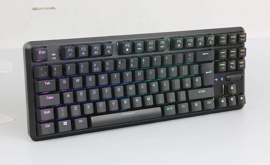 * Texture:ABS * Colour: black * with RGB lighting (8 light colors) * Key number:88keys * Life-cycle:50millions * Product Size:362mmx134mm x 35 mm * GW:885 ±15g * Cable:1.8M USB Braided Cable * Lithium battery:1000mAh * Platform:Windows XP,7,8,10 * Color box:305x115x53MM * GW:1200g ±20g * Certification:CE,ROHS,REACH