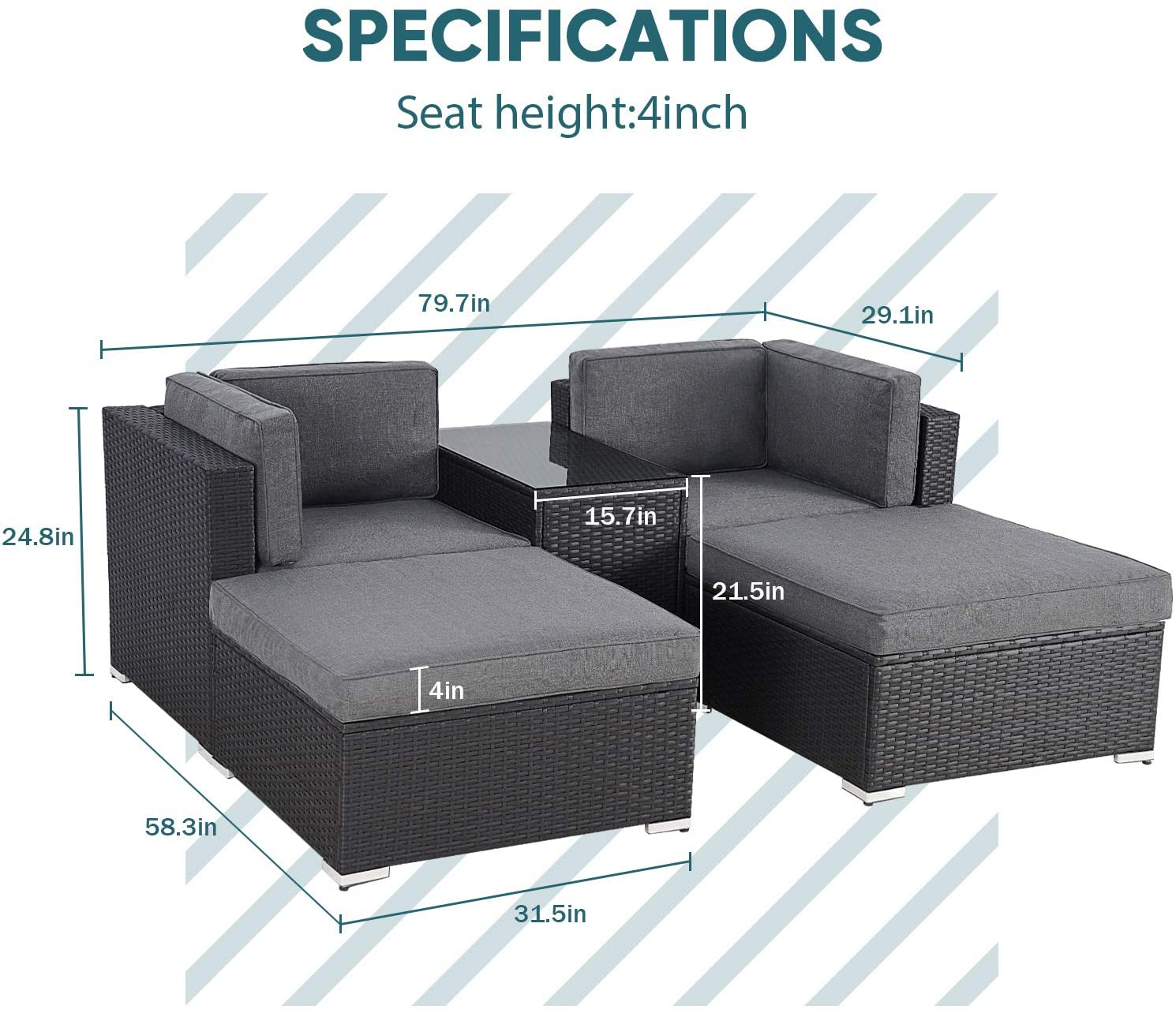 Packaging Detail: | Outdoor Furniture Package: A. Inner wrapped by EPE sheet, the middle by corrugated paper ,outer by plastic bag. B. Clear packing and loading photos obtainable by request. C.Stronger protection made on the sofas when loading. D.Desiccants placed in the container in order to prevent moisture damage and mildew. E.Sofa ships assembled with leg unmounted. |