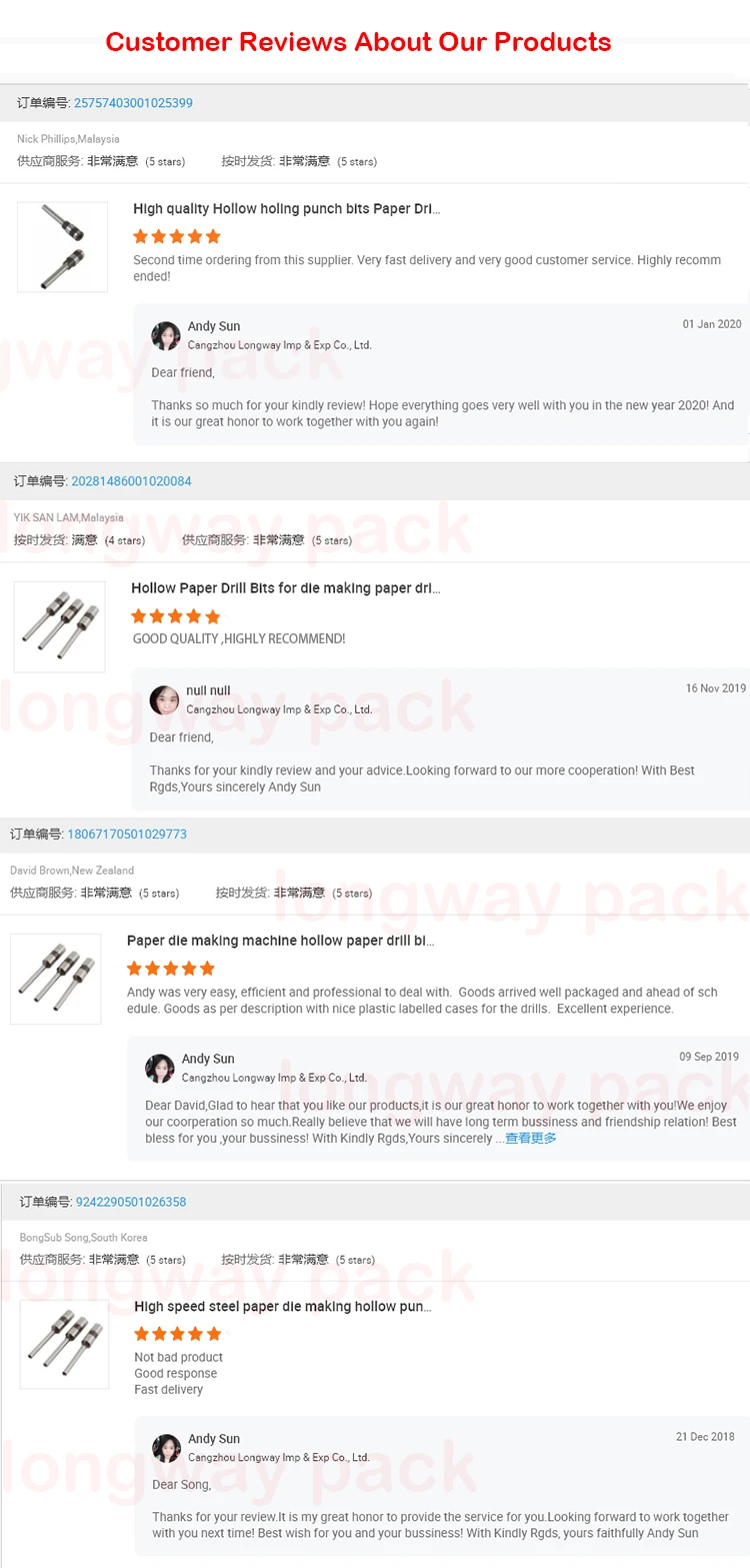 Features ● The size from 2 mm to 20 mm ● Standard high speed steel for paper, board ● Both outside and inside edges polished for smooth surface