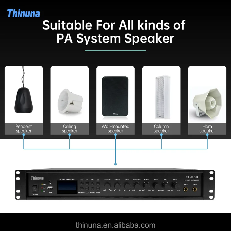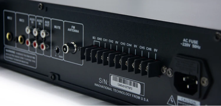 Volume Control for Each Zone | 6 zones speaker output with individual volume control; Note: the power capacity for each zone can reach the rated power of amplifier. But make sure that the total power of zone 1~6 can not exceed the rated power. | ||||||||