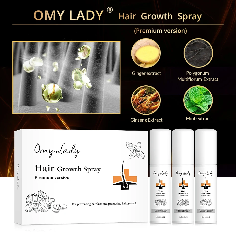OMY LADY® Hair Growth Spray has the functions of accelerating blood circulation on scalp, enhancing the massiness of hair follicles and roots, swelling hair roots, promoting melanin synthesis, mending hair quality, OMY LADY® Hair Growth Spray is effective to all kinds of hair-loss. It is the most effectual herbal hair product.