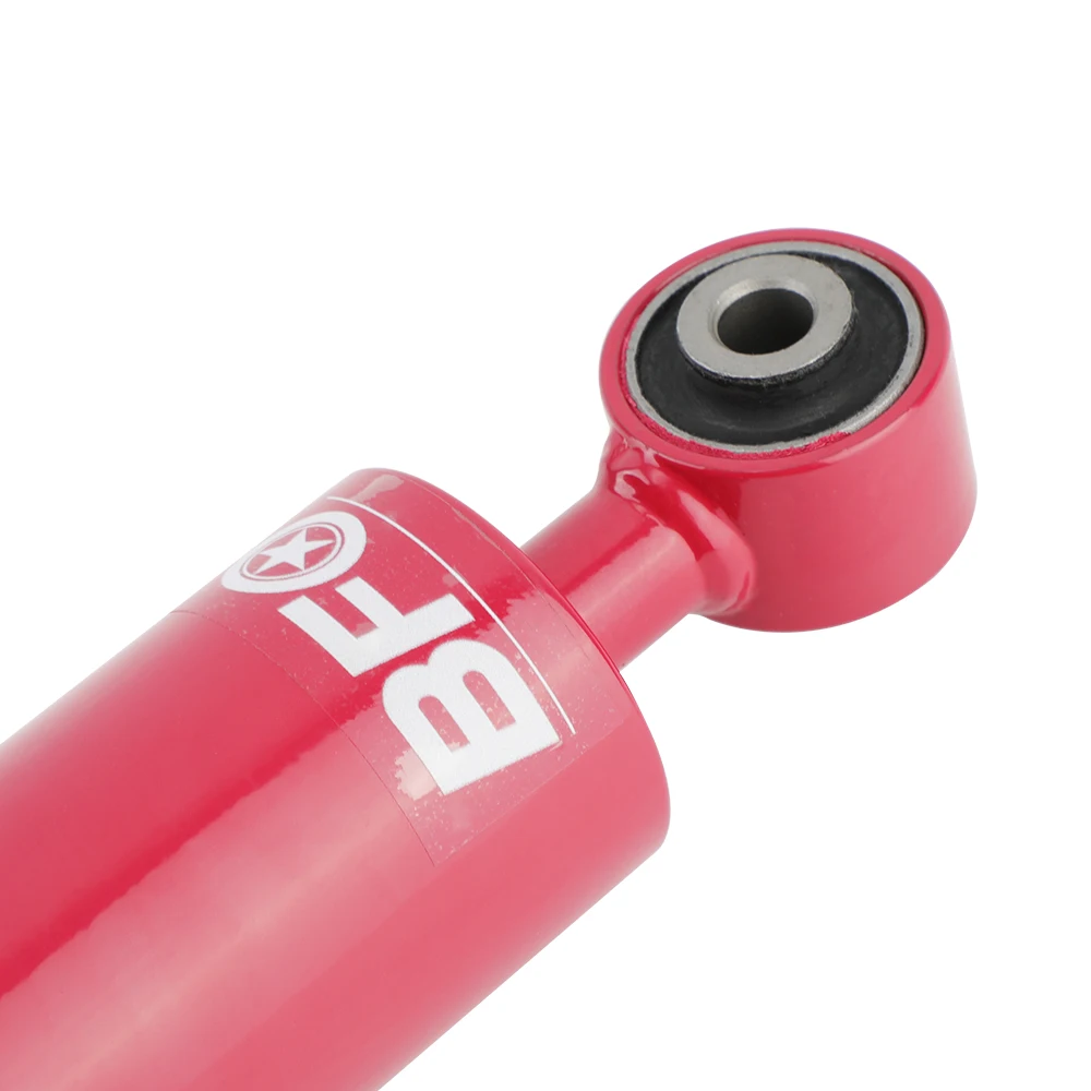 Specifications | Front and Rear top mount: rubber Spring rate: front 10kg/mm(560 lbs/in) Spring rate: rear 7 kg/mm (392 lbs/in) Adjustable height: Yes lowering 1" to 3" Shock type: Twin tube Spring Preload: 7-10 mm Color: Red body with white spring |