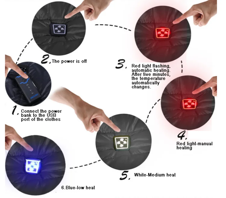 The package includes: 1.5V 5200 MAH USB power bank+cable*1 2. heated vest *1 piece