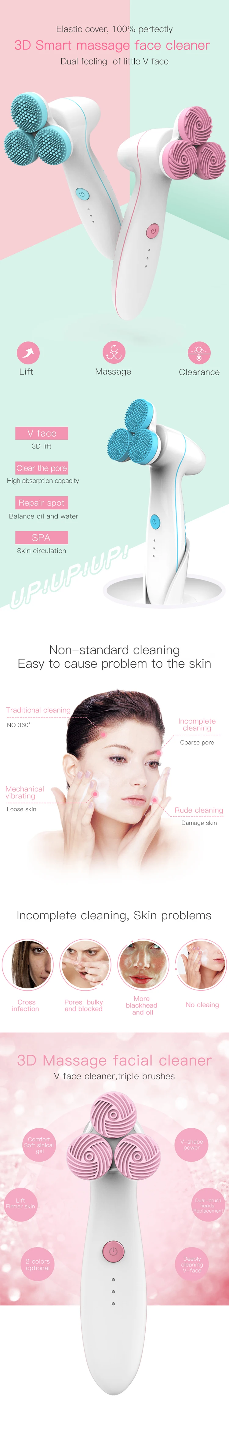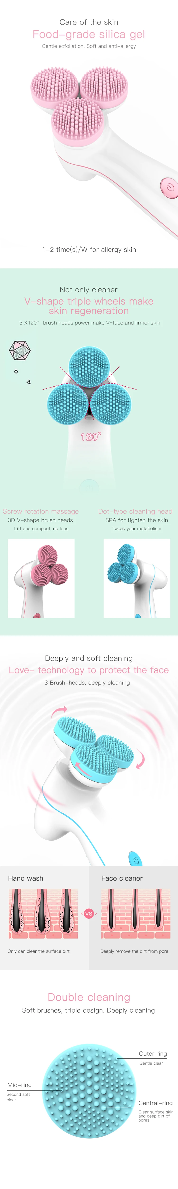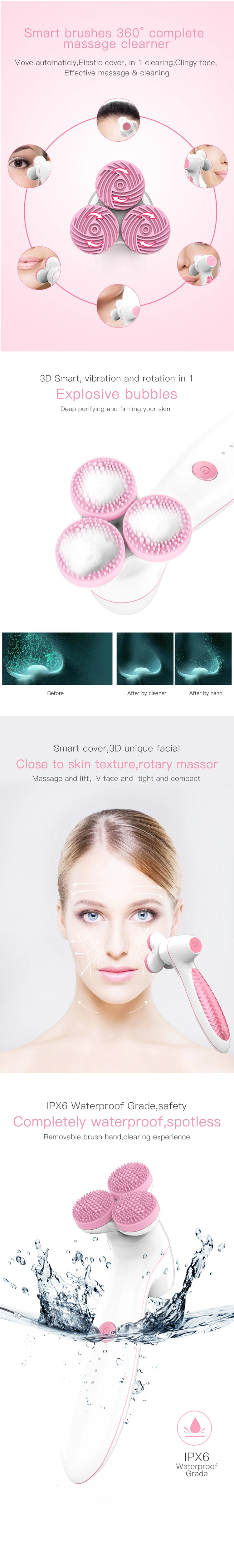 Amazon Best Selling Ultrasonic Skin Scrubber Lumispa 3D Smart Silicone Massage Facial Cleansing Brush