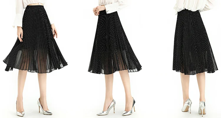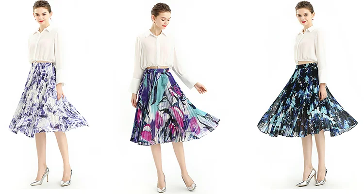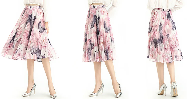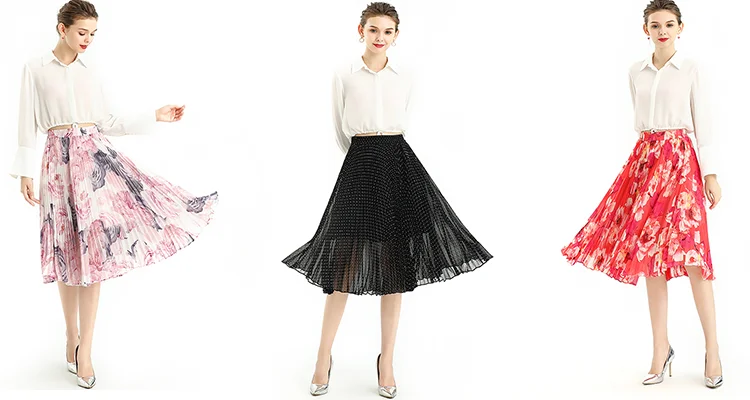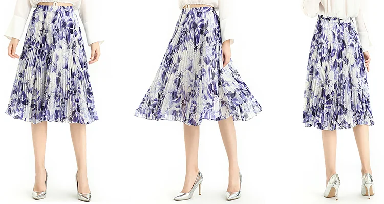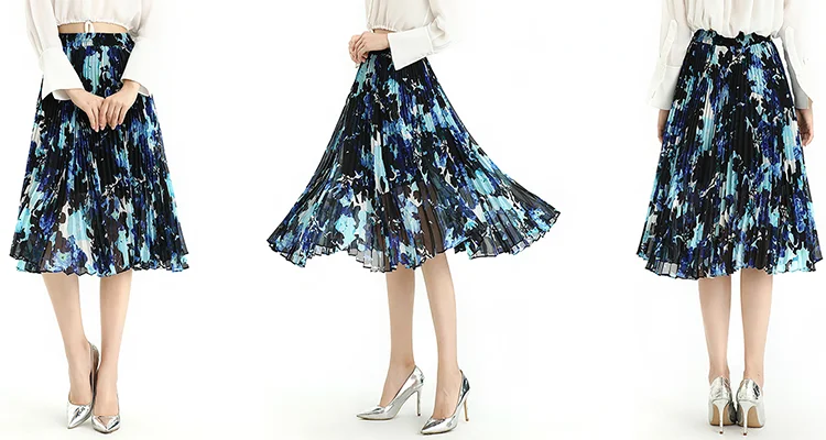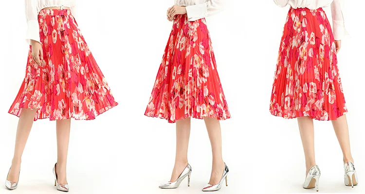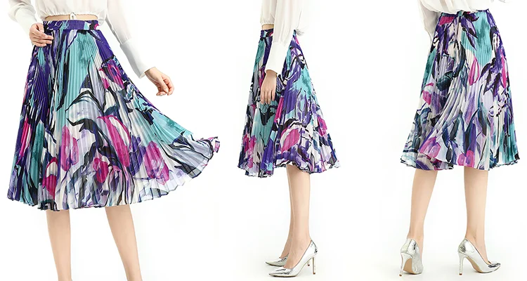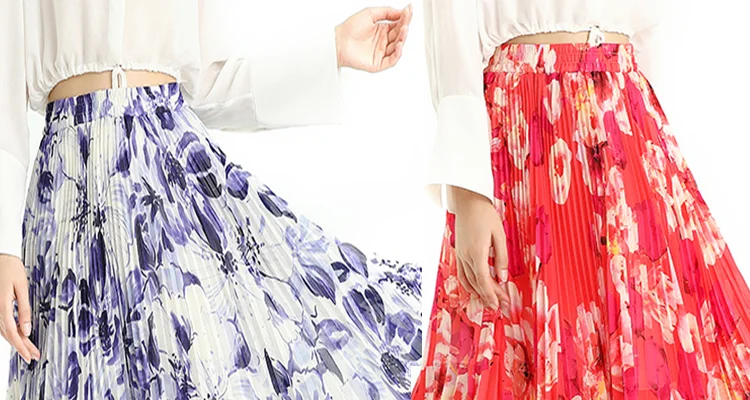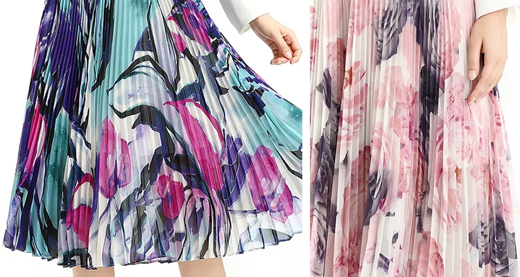 Floral /Dot Print, Elastic Band For Convenient Waistline Adjustment, Suitable For Different Waist. 360º Sunray Pleat Showing Sun Shape, Anti-wrinkle Indeformable. Loose Fit,Flare Swing Skirt Achieved Smoothly And Gliding Feeling When Walking. Soft And Breathable