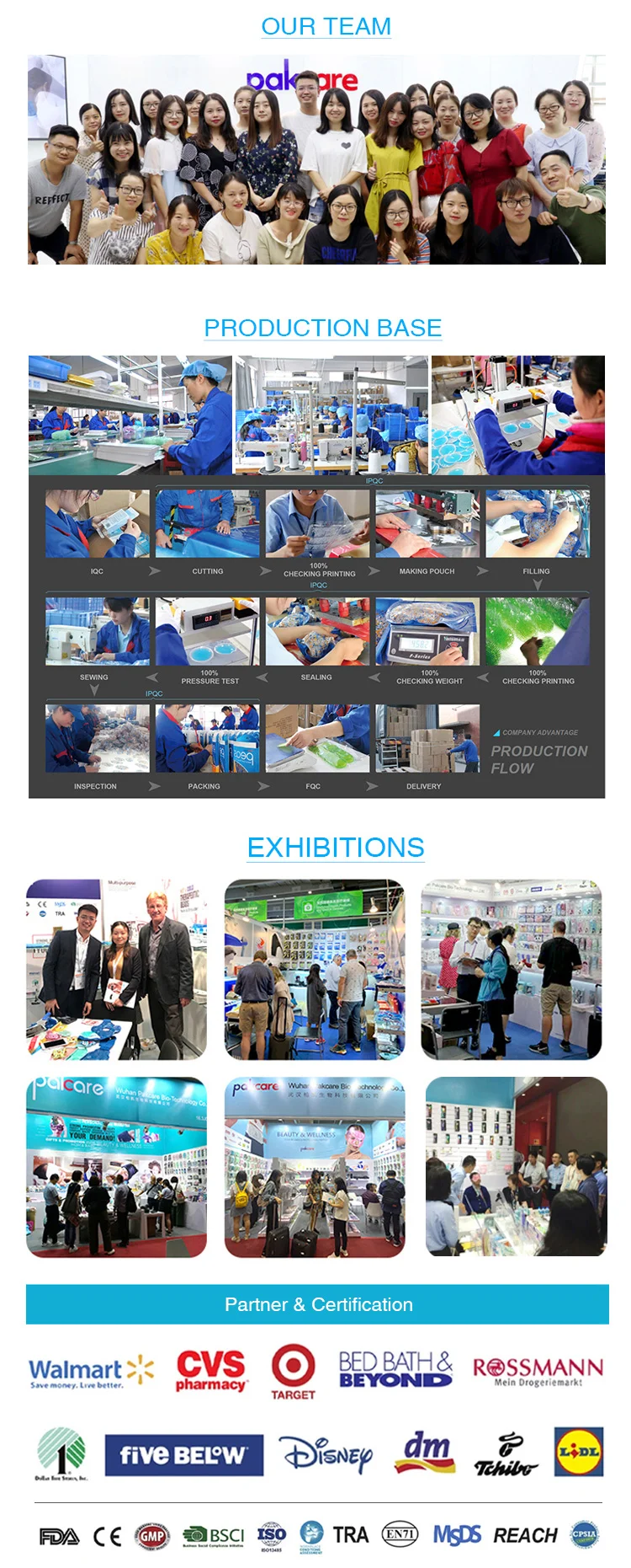 • As the supplier for numerous well-known brands , we are qualified audit from Wal-mart, CVS pharmacy, Target Medline,Tchibo etc.